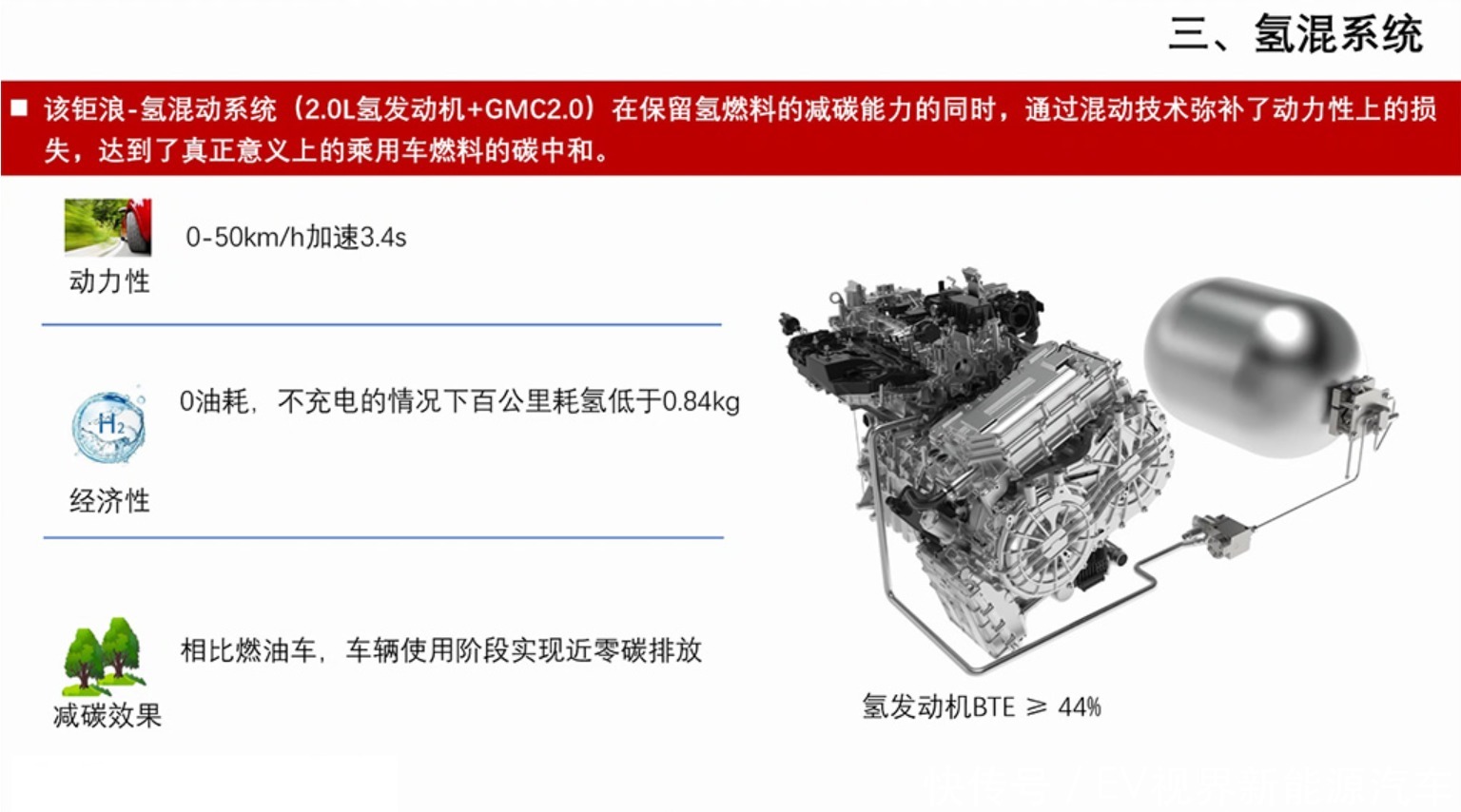 同时本次发布会也发布了氢能源动力系统,由1.5L氢发动机+两挡双电机+插电式动力电池组成。